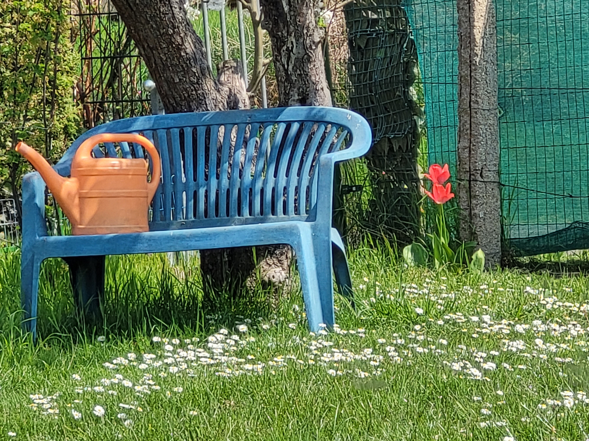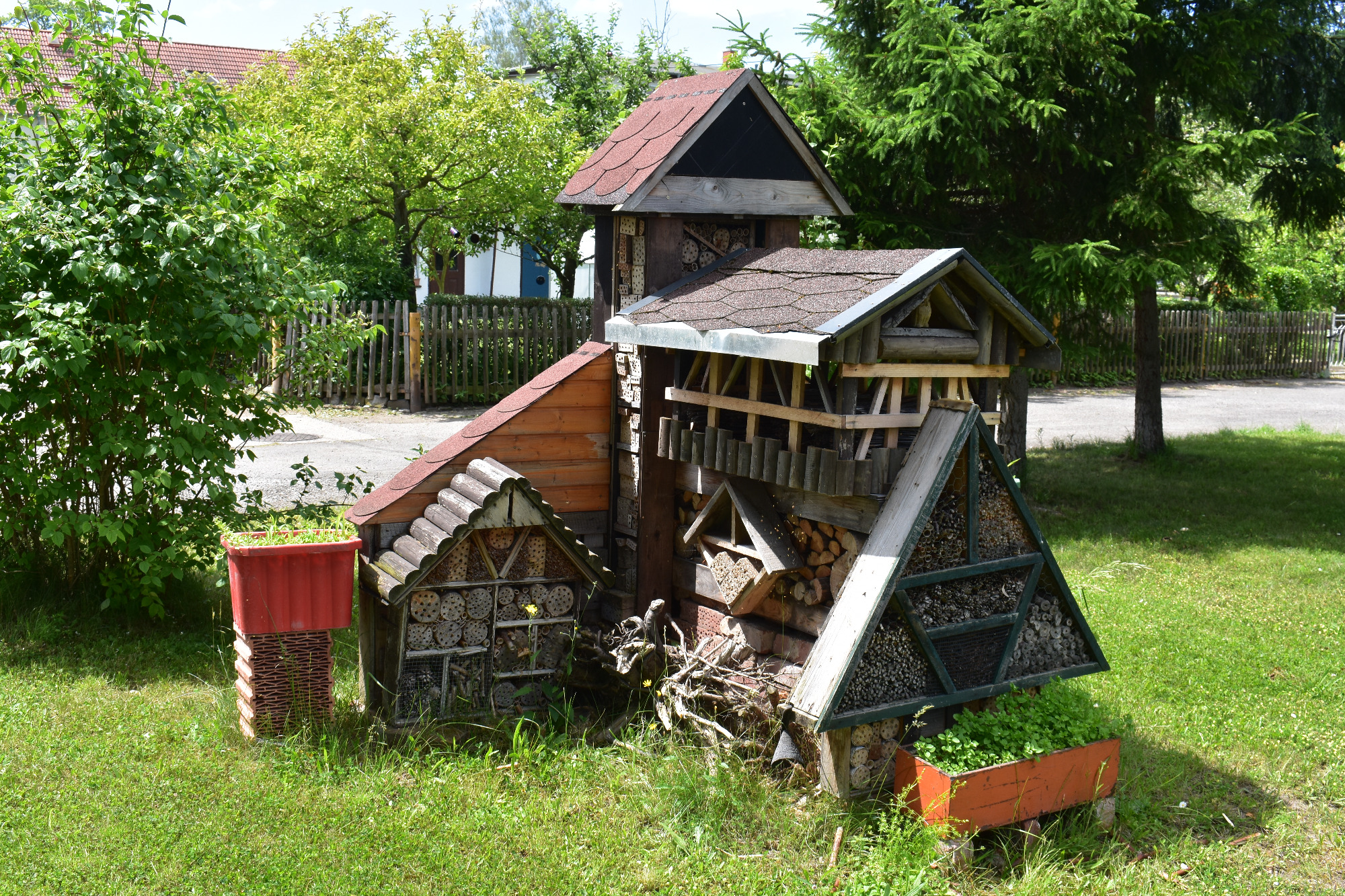 Das angrenzende Wäldchen sorgt für bunte Vielfalt und den akustischen Hintergrund.